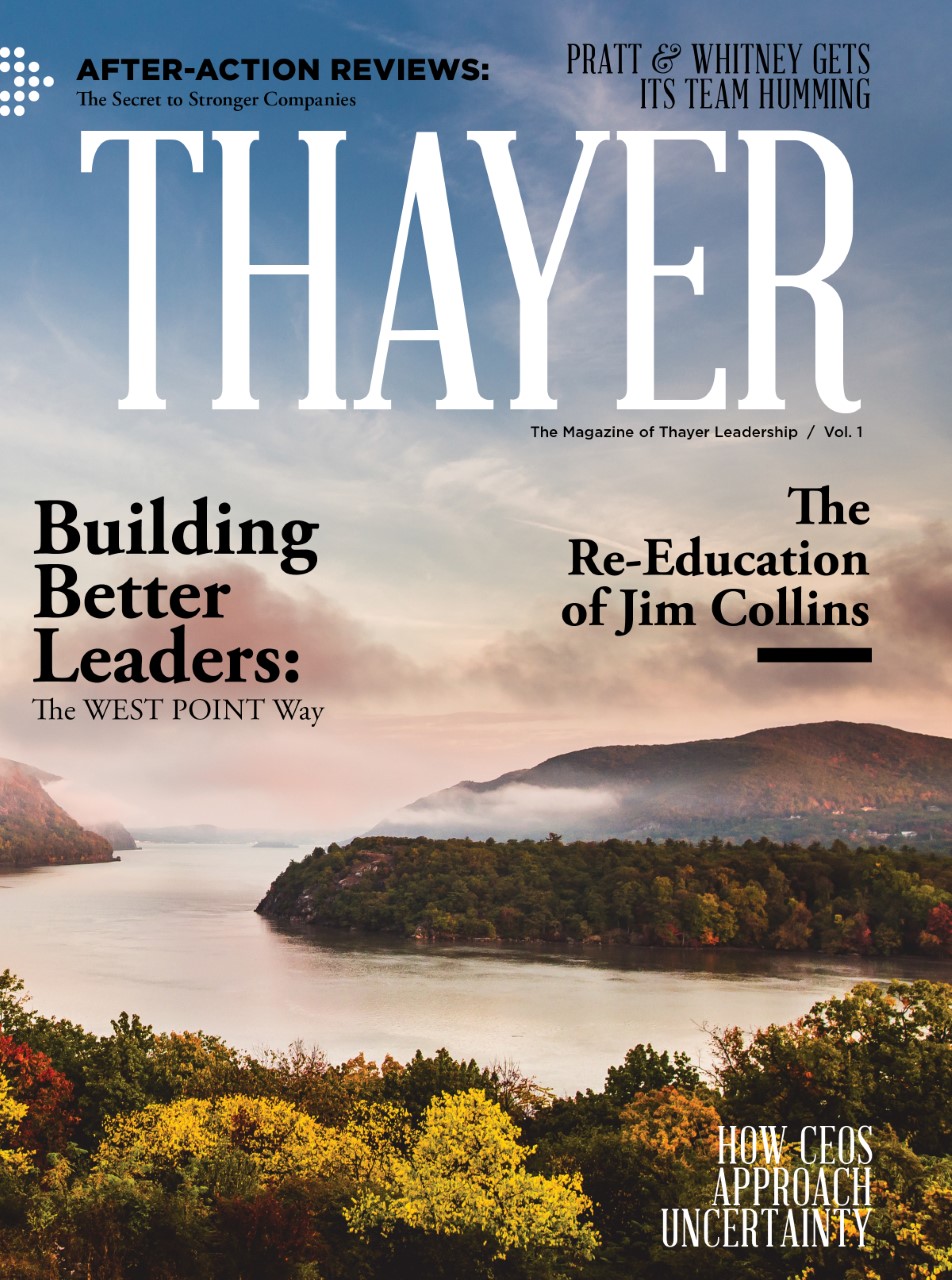 At Thayer, we specialize in transformative experiences that give tangible tools to leaders on how to lead with character, inspire, and effectively navigate complexity. We hope that resonates from the case studies found in the magazine. THAYER magazine includes articles written by distinguished faculty about building better leaders, overcoming adversity, approaching uncertainty, and creating stronger organic teams. It is rich with exemplary leaders of character, West Point history, and real tools for real leaders.